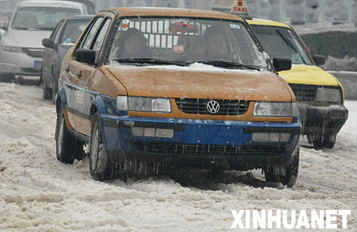 長沙再遭大雪襲擊 汽車行進中掛滿冰棱