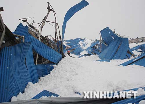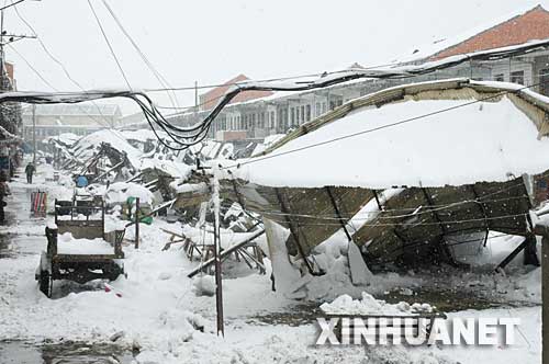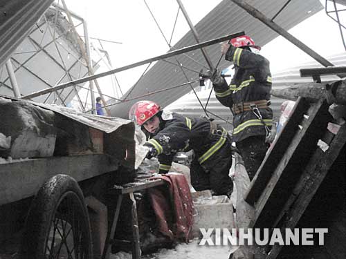 當日,安徽省巢湖市突降暴雪,巢湖市含山縣仙蹤鎮一個面積3000平方米的農貿市場倒塌,8人被困。事發后,當地政府調動武警和消防部門50多人趕到現場營救,經過數小時搜救,被困者全部獲救。 新華社發