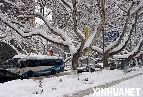 | 1月28日,南京街頭的樹木上積滿白雪。 新華社記者 孫參 攝 |