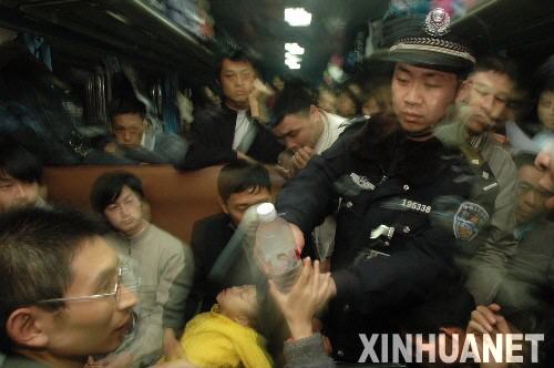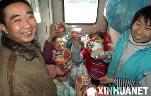 1月28日,在合肥火車站,旅客在排隊上車。 當日凌晨3點,由合肥開往成都1432/1433次列車,因大雪晚點4小時后進入站臺,記者隨旅客隊伍一起登上這趟列車,一線感受春運。開車后,各車廂列車員為旅客及時供應開水,廣播員多次為列車晚點向旅客致歉,列車長和乘警走進硬座車廂檢查“三品”。車廂外天寒地凍,車廂內暖意融融。新華社記者 陶明 攝