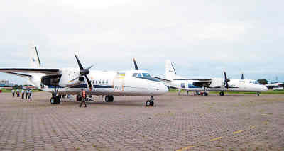2月21日,玻利維亞政府和空軍在圣克魯斯舉行儀式,接受兩架中國制造的新舟60飛機。此次中國新舟60飛機來玻也標志著中國制造的客機歷史上第一次進入南美洲市場。圖為兩架中國制造的新舟60飛機停放在玻利維亞東部圣克魯斯省首府圣克魯斯的機場。新華社發
