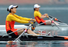 由于之前女子單人雙槳的前六名決賽資格已全部被“國字號”選手占據,因此,當天的比賽可以說是國內該項目的一場巔峰對決。最終,唐賓以7分39秒05獲得第一,李勤和張秀云分列第二、第三名,成績分為7分40秒13和7分40秒44。 女子輕量級單人雙槳中,名將徐東香獲得冠軍,成績為7分52秒08。隊友陳海霞7分52秒38名列第二。對于當天的表現,徐東香并不是很滿意。她賽后透露,由于背部有傷,當天發揮不是很好。從起航到1500米時,都還落后陳海霞近一條艇的距離。直到經過最后500米沖刺,才以微弱優勢險勝。 男子方面,由世界冠軍張林/吳崇魁,田軍/黃鐘鳴組成的兩艇在男輕雙人單槳中分獲第一、第二,成績為6分46秒06和6分48秒39。 當天除了決出各個項目最終名次外,還進行了2000米測功儀錦標賽。測功儀相當于陸上劃船器,可以設定劃行距離、劃行時間等,是賽艇項目常用的一種訓練器材。賽后中國賽艇隊教練吳紀寧說,由于上午剛進行完決賽,隊員體力消耗比較大,因此下午的成績并不很理想。