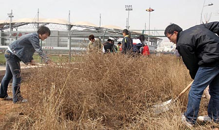 近日,河北秦皇島市白塔嶺街道辦事處的干部、職工以及秦皇島各高校的1500余名奧運環保志愿者,在秦皇島奧體中心清理整治周邊環境,以優美的環境迎接奧運會。
