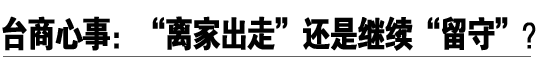 祖國大陸的勞動力和土地成本正在迅速提高,且出臺了加工貿易、出口退稅、“兩稅合一”以及勞動合同法等一系列新政策,今年迎來20周歲的大陸臺商群體正在遭遇“成長煩惱”,是“離家出走”還是繼續“留守”? 臺商會否大規模從大陸外移的問題也引起了社會各界廣泛關注。參加4月8日在廈門舉行的第十二屆海峽兩岸機械電子商品交易會的有關專家分析認為,臺商從大陸外移將面臨很大風險,臺商大規模外移的現象不太可能發生,但臺商在大陸的投資模式和投資區域將會發生變化。 臺商群體處境猶如“夾心漢堡” 1988年,大陸第一家臺資企業三德興有限公司落戶廈門。[詳情] | | |