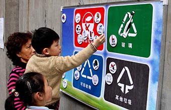 日前,上海開始在居民區推行新的生活垃圾分類管理辦法,紅、綠、藍、黑四色嶄新的垃圾桶出現在居民區中,引導居民主動對垃圾篩選分類,生活垃圾將不再是“放錯地方的資源”。 據上海市容環衛部門介紹,除了大件垃圾和裝修垃圾以外,上海新的垃圾分類方式把居民區垃圾分為:玻璃、有害垃圾、可回收物、其他垃圾四類,對應的垃圾桶顏色分別為綠色、紅色、藍色和黑色。 4月19日起,上海在100個居民小區率先推行生活垃圾四色新分類模式,下半年四色垃圾桶還將推廣至全上海1000個封閉式居住區。 除封閉式居住區外的其他兩大區域,將實施不同的分類方式:年內,景觀道路、主要旅游景點等公共場所將全面實施生活垃圾二分類,即分為可回收物、其他垃圾;1000家政府機關、學校、大中型企事業單位等將實施生活垃圾三分類,即可回收物、有害垃圾和其他垃圾。上海市容環衛部門負責人介紹,上海計劃五年內形成生活垃圾分類收集、分類運輸、分類處置全過程暢通、有序的物流系統,實現全程管理。垃圾分類作為發展循環經濟、落實節能減排要求的一項重要措施,不僅是對資源的一種充分利用,更是綠色奧運的一種體現。 上海一位市民程阿姨說:“奧運快到了,我們也要從自身做起,要改變以往生活中的不良習慣,真正讓綠色融入生活中去!