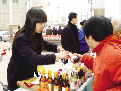 | 寬牌醋技術人員向消費者介紹辨別食醋真假的方法 |
