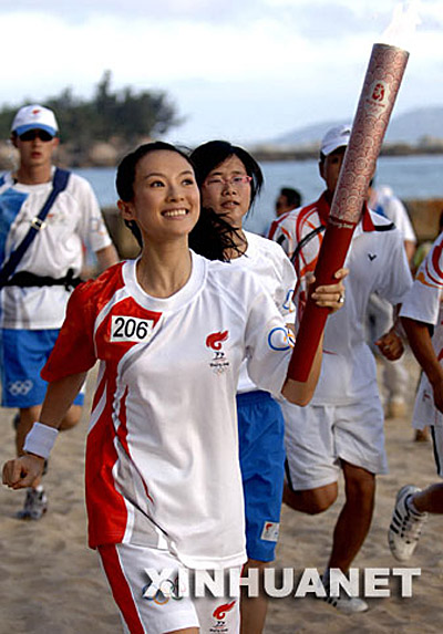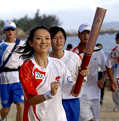 5月4日,火炬手章子怡與上一棒火炬手陸川交接。
