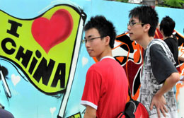 5月1日,青少年在塔石廣場上觀看迎接北京奧運會的“創意涂鴉大比拼”作品。當日,中國澳門特區在塔石廣場舉辦“中國澳門青年喜迎2008北京奧運”活動,逾萬名中學生及當地居民參與到活動當中。