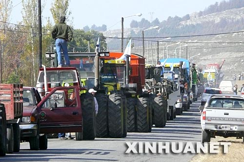 5月10日,阿根廷農業團體在阿中部城市瓜萊瓜伊丘舉行大規模示威,抗議政府的農業政策。阿根廷農業團體7日宣布,由于未能與政府就農產品出口稅問題達成協議,他們決定再次舉行罷工,停止農產品生產和出口。 新華社/美洲通訊社