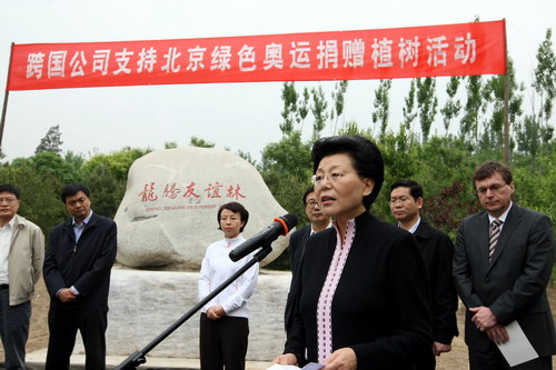商務部副部長馬秀紅、北京市副市長程紅、北京朝陽區區委書記陳剛參加了此次活動。馬秀紅在捐贈植樹活動儀式上表示,綠色奧運是北京奧運會三大理念之一。中國一直堅持用保護環境、保護資源、保護生態平衡的可持續發展思想籌辦奧運會,并將廣泛開展環境保護的宣傳教育活動,倡導綠色健康的生活方式和消費方式,促進北京和中國環;A設施的建設和生態環境的改善。馬秀紅認為,捐贈植樹活動充分體現了跨國公司以實際行動支持北京奧運,支持社會公益活動,履行社會責任。