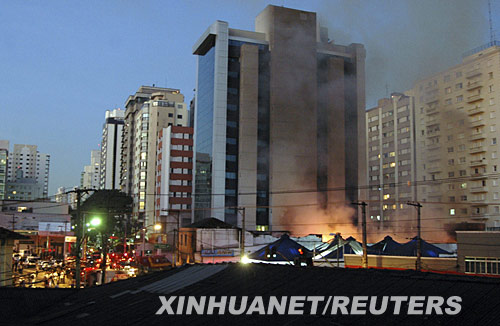圖為5月20日,巴西圣保羅市中心的一座建筑起火冒煙。新華社/路透