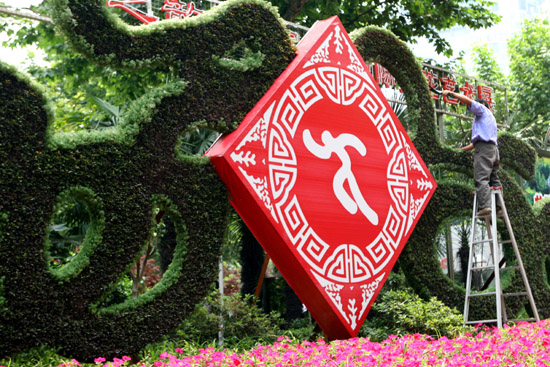 隨著北京奧運會的臨近,表達奧運主題的綠化置景在上海街頭亮相,在美化市容的同時,營造出濃厚的奧運氛圍。