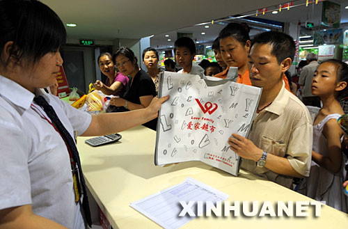 6月1日,顧客在烏魯木齊市的一家超市領取環保購物袋。新華社記者 趙戈 攝