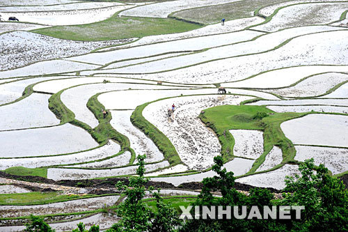 5月31日在貴陽市花溪區高坡鄉拍攝的梯田美景。眼下,雨水充沛,高坡鄉的梯田分外迷人。