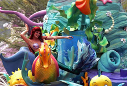 “美人魚”在香港迪斯尼樂園的大巡游上表演。本報記者:薛永興
