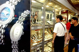 琳瑯滿目的香港鐘表店吸引游客駐足觀看。本報記者:王小川