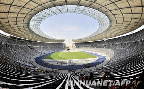 6月3日,在德國首都柏林的奧林匹克體育場,長達3.7萬米的畫卷覆蓋了所有的座位。新華社/法新