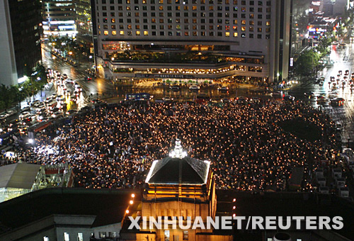 韓國總統李明博當天說,鑒于民眾反對,韓國政府將不會按照原有韓美協議恢復進口月齡30個月以上的美國牛肉。韓國政府官員同一天稱,韓方已請求美方就此考慮修改協議中的原有條款。 新華社/路透
