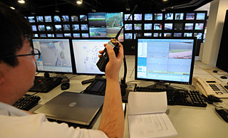 | 工作人員在國家體育場(“鳥巢”)的安保監控室里工作。新華社記者 李文