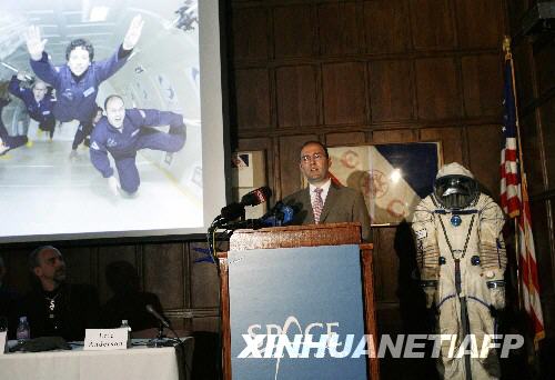 6月11日,美國太空冒險公司首席執行官埃里克·安德森在紐約召開的新聞發布會上發言。當日,太空冒險公司宣布,將于2011年購買一架“聯盟”號載人飛船,推出全球首架專為太空旅游打造的“純私人”航班。谷歌公司創始人謝爾蓋·布林已預訂下首張“機票”?偛吭O在弗吉尼亞州的太空冒險公司是目前全球唯一經營太空游的公司。過去幾年里,它和俄羅斯航天部門合作,把5名游客先后送上太空。 新華社/法新