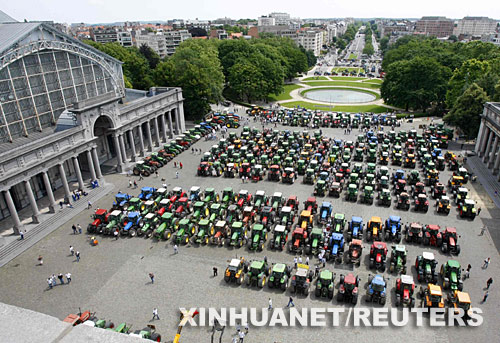 6月18日,比利時農民將數百輛拖拉機停在首都布魯塞爾市中心進行抗議。