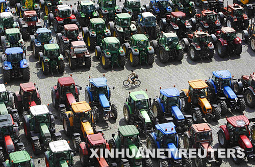 6月18日,比利時農民將拖拉機停放在首都布魯塞爾市中心進行抗議。新華社/路透
