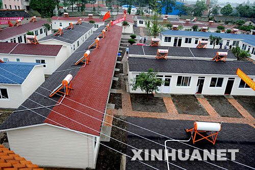 6月22日,北京市對口支援四川省什邡市元石鎮社會福利救助中心的“北京節能屋”正式投入使用,迎來地震災區孤殘老幼群眾入住。北京市援建的“北京節能屋”采用先進的鑲嵌式節能環保建筑材料技術,墻體采用可再生材料,具有防火、保溫、隔熱等功能,并安裝了節能燈、節水馬桶、太陽能熱水器、吸水地磚、垃圾處理箱等生活配套設施,這是四川災區第一個災后永久性重建項目,使用壽命可達30年。