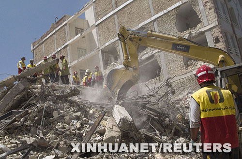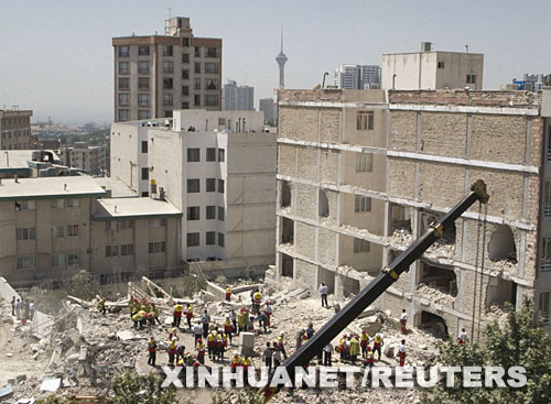 6月30日,在伊朗首都德黑蘭,救援人員在廢墟中搜索幸存者。德黑蘭當日發生一起居民樓倒塌事故。新華社/路透