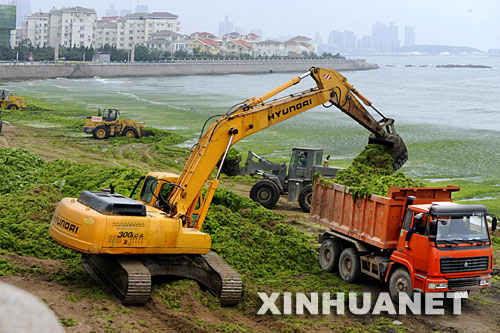 6月上旬以來,青島市近海海域開始出現大面積滸苔,最大影響面積達到1.3萬平方公里,實際滸苔覆蓋面積約為400平方公里,對城市景觀和奧帆賽運動員賽前訓練產生了一定的影響。面對突如其來的自然災害,青島全市上下積極行動,社會各界群眾從海上、潮間帶、岸邊進行全方位的打撈清理。目前,每天已有超過萬人、千余艘各類船只、數十臺裝運機械投入到清理行動中。截至6月28日,清理滸苔數量超過10萬多噸。 |