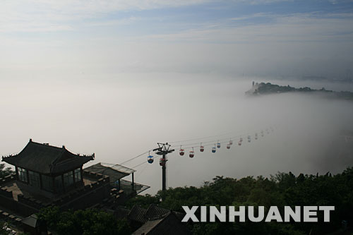 7月13日清晨,山東省蓬萊市出現平流霧奇觀,蓬萊景區宛如仙境,美不勝收。