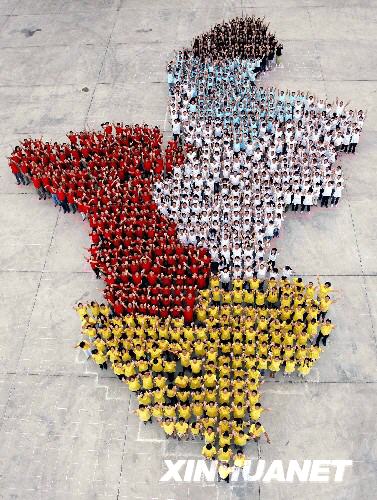 由千余名新聞工作者組成的寧夏地圖(7月14日攝)。