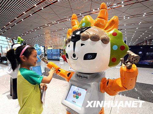 當日,在民航局及機場奧運團隊支持下,由中國民航大學研制的5個奧運福娃機器人,亮相北京首都國際機場T3航站樓。奧運會期間,奧運福娃機器人將守候在北京首都國際機場,迎送到港離港的奧運大家庭成員和國內外賓客。