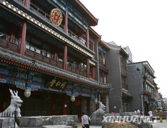 7月17日在即將完工的大柵欄商業街拍攝的“同仁堂”藥店。