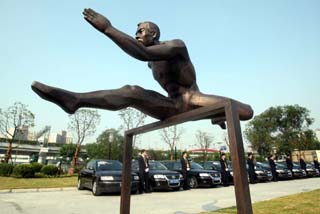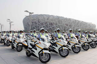 7月20日,北京奧運交通應急小分隊在“鳥巢”前整裝待發。