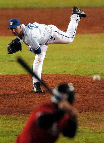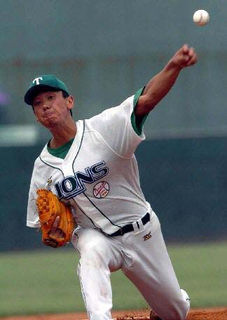 2004年7月11日,天津雄獅隊球員張萬軍在投球。當日,2004年全國棒球聯賽總決賽在天津落下帷幕,經過五場激戰,衛冕冠軍北京猛虎隊以3比2力克天津雄獅隊蟬聯冠軍。