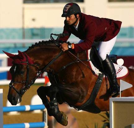 2006年12月12日,卡塔爾選手魯邁希在卡塔爾首都多哈舉行的第15屆亞運會馬術障礙賽中獲得金牌。 新華社發(資料照片)