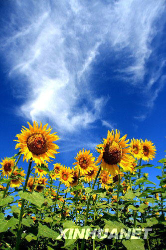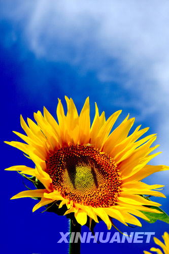 7月22日在新疆阿勒泰拍攝的盛開的向日葵。7月中旬以來,阿勒泰市周邊的10萬畝向日葵競相綻放,景色迷人,吸引了大量游客前來觀賞,也吸引了許多養蜂人前來放蜂、采蜜。