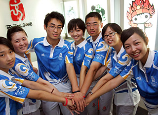 | 天津奧運志愿者為奧運加油。新華社記者 劉海峰