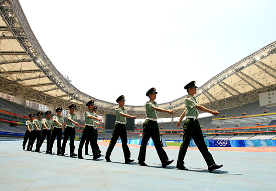 武警上?傟犚恢ш牴俦壳耙讶孢M駐北京奧運會上海賽區的比賽場館——上海體育場,對比賽場館和周邊相關區域實行封閉式管理。
