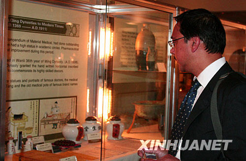 7月28日,在英國倫敦皇家醫學會,一名觀眾在英國中醫藥周活動上參觀中醫藥實物展。英國中醫藥周7月27日在倫敦開幕。在隨后的一周時間內,中英醫學界人士將探討中醫藥在英國的發展前景,特別是確立中醫藥在英國的合法地位等問題。英國中醫藥周還將舉辦展覽,幫助觀眾了解中醫藥的歷史和現狀。 |