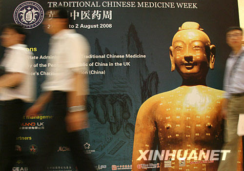 7月28日,在英國倫敦皇家醫學會,人們從英國中醫藥周的巨幅海報前走過。英國中醫藥周7月27日在倫敦開幕。在隨后的一周時間內,中英醫學界人士將探討中醫藥在英國的發展前景,特別是確立中醫藥在英國的合法地位等問題。英國中醫藥周還將舉辦展覽,幫助觀眾了解中醫藥的歷史和現狀。 | |