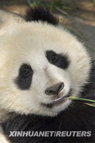 8月1日,在美國圣迭戈動物園,大熊貓“珍珍”在吃竹子!罢湔洹笔2007年8月3日在這家動物園由大熊貓“白云”產下的,現在已有約40磅(約合18公斤)重,能夠進食竹子等固體食物!罢湔洹笔窃谑サ陝游飯@誕生的第四只大熊貓。 新華社/路透