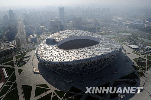 第二十九屆夏季奧運會即將于8月8日在北京開幕。這是在8月2日晨曦中航拍的國家體育場——“鳥巢”。
