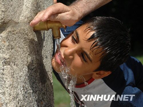8月4日,在西班牙首都馬德里,一名男孩喝水降溫。近日,伊比利亞半島遭遇熱浪襲擊,部分地區最高氣溫已突破40攝氏度。西班牙政府已發出高溫警告,要求居民注意防暑降溫。