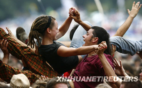 8月2日,在波蘭西部的奧得河畔,參加波蘭第14屆伍德斯托克音樂節的人們正在歌舞狂歡。新華社/路透