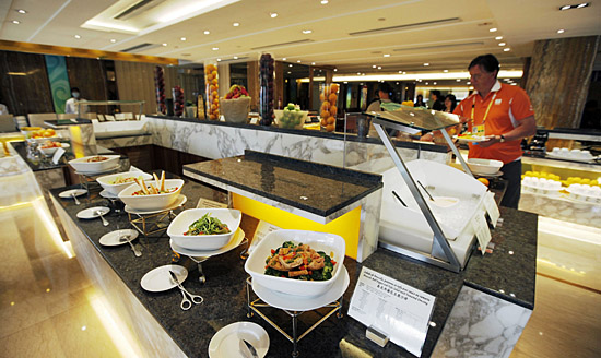 作為奧運馬術比賽協辦城市的香港,奧運氣氛日益升溫,隨處可感受到迎面而來的“奧運風”。 為成功舉行奧運馬術比賽,香港花費12億港元興建和完善了奧運馬術比賽場地,場地的硬件設備和軟件條件現已準備就緒。 由于舉辦奧運賽事,來自世界各地的運動員、媒體記者和游客正陸續抵港。向來緊隨潮流的香港餐飲業自然應時應景,瞄準奧運商機,推出相關特色菜式及點心。 據介紹,這些奧運菜式的命名都已嚴格按要求向有關部門進行申報并獲得通過。香港連鎖飲食集團執行經理鐘家寶介紹,奧運主題點心及套餐已漸漸升溫,自推出以來已占生意額約一成。期待奧運會期間,奧運菜肴還會有更好的表現。