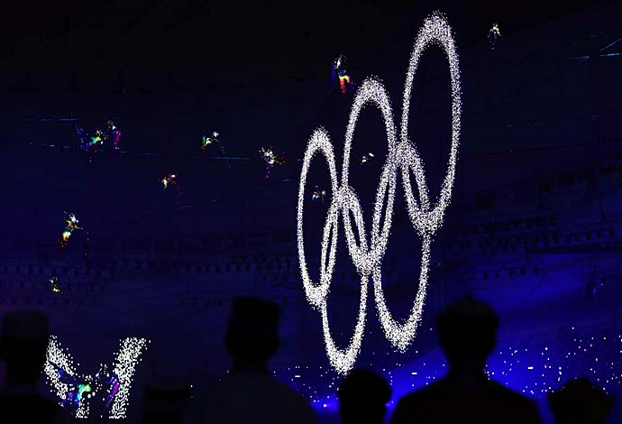 8月8日,第29屆夏季奧林匹克運動會在國家體育場——“鳥巢”隆重開幕。這是開幕式上閃閃發光的夢幻“五環”。