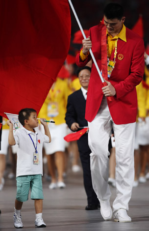 8月8日,中國代表團旗手姚明和九歲半的林浩一起入場。當晚8時,第29屆夏季奧林匹克運動會在國家體育場——“鳥巢”隆重開幕。