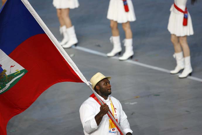 >> 海地代表團在開幕式上入場