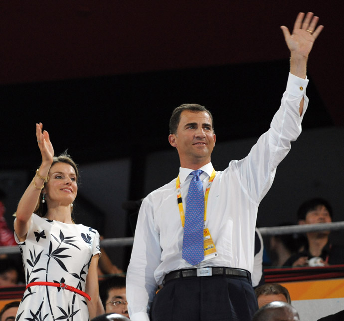 8月8日,西班牙王儲費利佩在北京奧運會開幕式上向運動員致意。